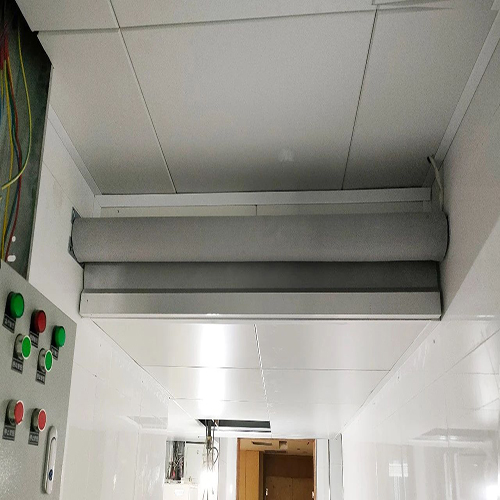 電動擋煙垂壁是擋煙垂壁中一款可以與消防聯動的擋煙垂壁。由防火硅膠布、卷軸、電機、底梁、控制器組成,當發生火災時,電動擋煙垂壁接收到信號后,自動下降至工作位置進行擋煙蓄煙。