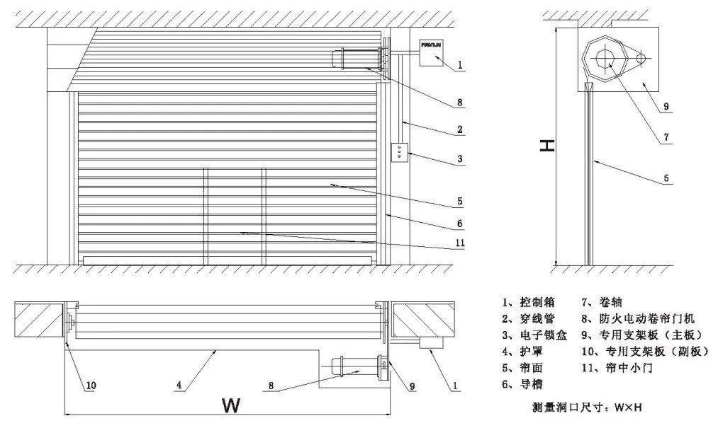 3.鋼制防火卷簾電動啟、閉的運(yùn)行速度應(yīng)為2m/min~7.5m/min,其自重下降速度不應(yīng)大于9.5m/min。