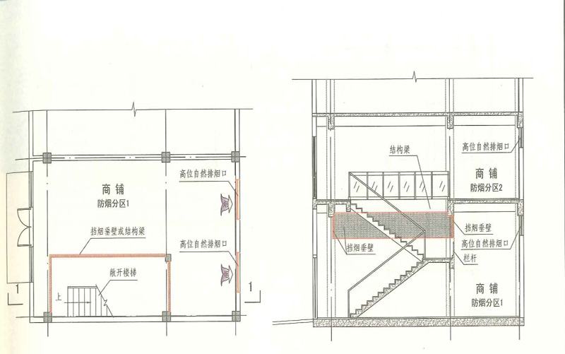 (1)敞開樓梯間開口部位是否應(yīng)設(shè)置擋煙垂壁?
